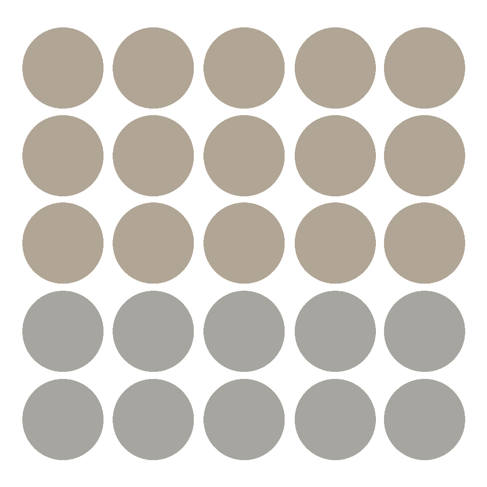 Dots in regelmäßigen Strukturen sind in der konzepetionellen minimalistischen Kunst ein beliebte Idee. Viele Künstler haben Dot Paintings erstellt, mit unterschiedlichen Zielsetzungen und Regeln oder nach Zufallssystemen, teilweise auch mit Dots im Quadratformat oder Rechteckformat. Gemeinsam haben sie: die Dots symbolisieren Ordnung, Wiederholung und Wirkung von Farbe und betonen, dass keine Farbe wichtiger als die andere ist.