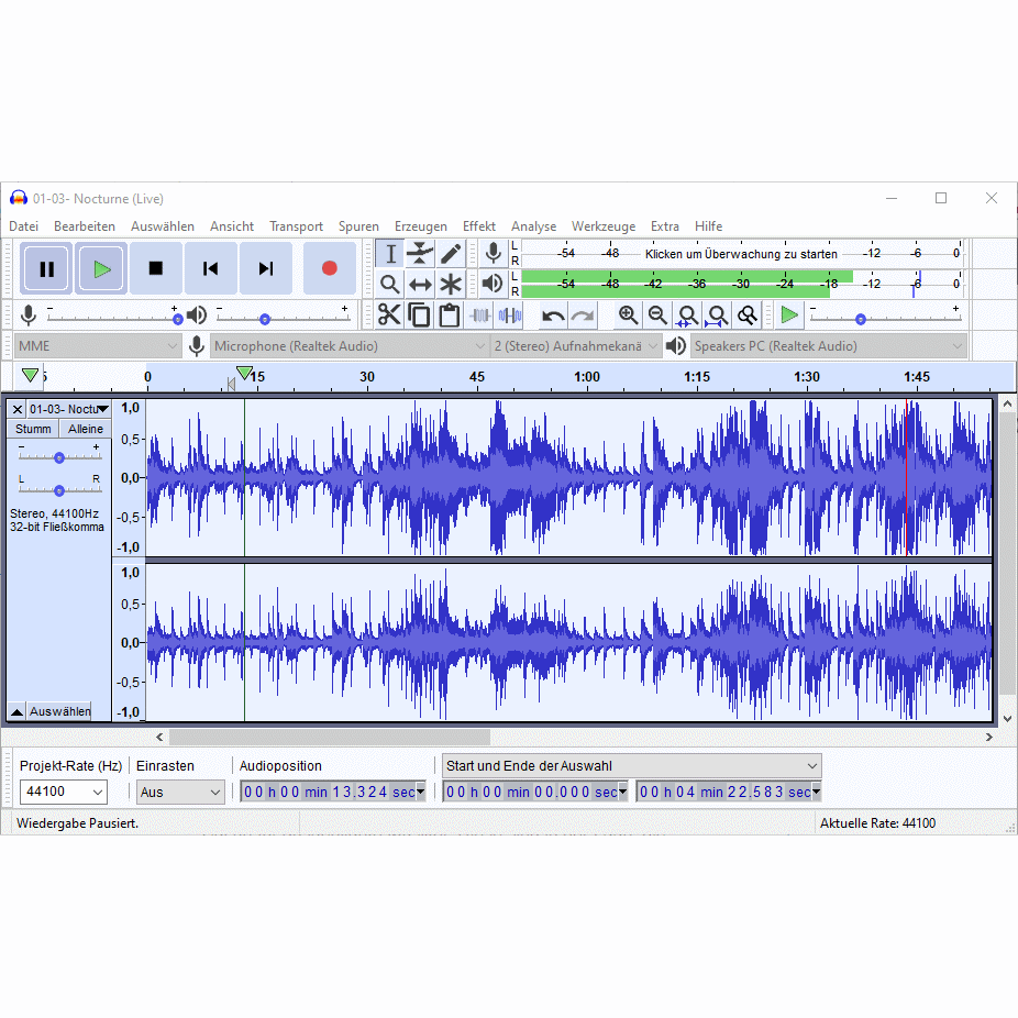 Ich habe mich für die zweite Möglichkeit entschieden. Die Darstellung bleibt abstrakt, die technischen Darstellungen können zu einem Bild verarbeitet werden. Eine musikalische Bedeutung kann man dem Signal nicht zuordnen, es bleibt eine technisches Signal. Die ursprüngliche Absicht bleibt ein abstraktes Ziel.