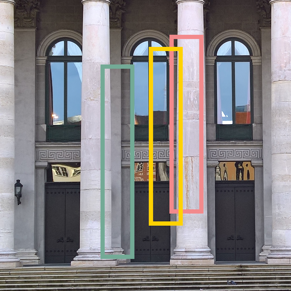 Die Fotos wurden mit einem Smartphone erstellt und sind nicht weiter bearbeitet. Die Hintergrundfarben der Bilder nur mit den grafisch konstruktiven Elementen wurden den jeweiligen realen Abbildungen in der Weise entnommen, dass die Farbigkeit in den reality concrete Bildern und in den Bildern mit den separat dargestellten grafisch konstruktiven Elementen möglichst ähnlliche Wirkung hat. Dies ist nicht selbstverständlich, schon geringen Unterschiede in der Helligkeit oder Farbigkeit der Hintergründe können die Farben der grafisch konstruktiven Elemente stärken oder blasser, heller oder dunkler wirken lassen. Insofern geht es hier auch um die Wirkung von Farbe im Kontext des Umfeldes. Und das wiederum ist Konkrete Kunst.