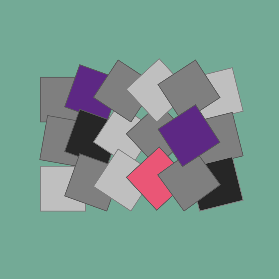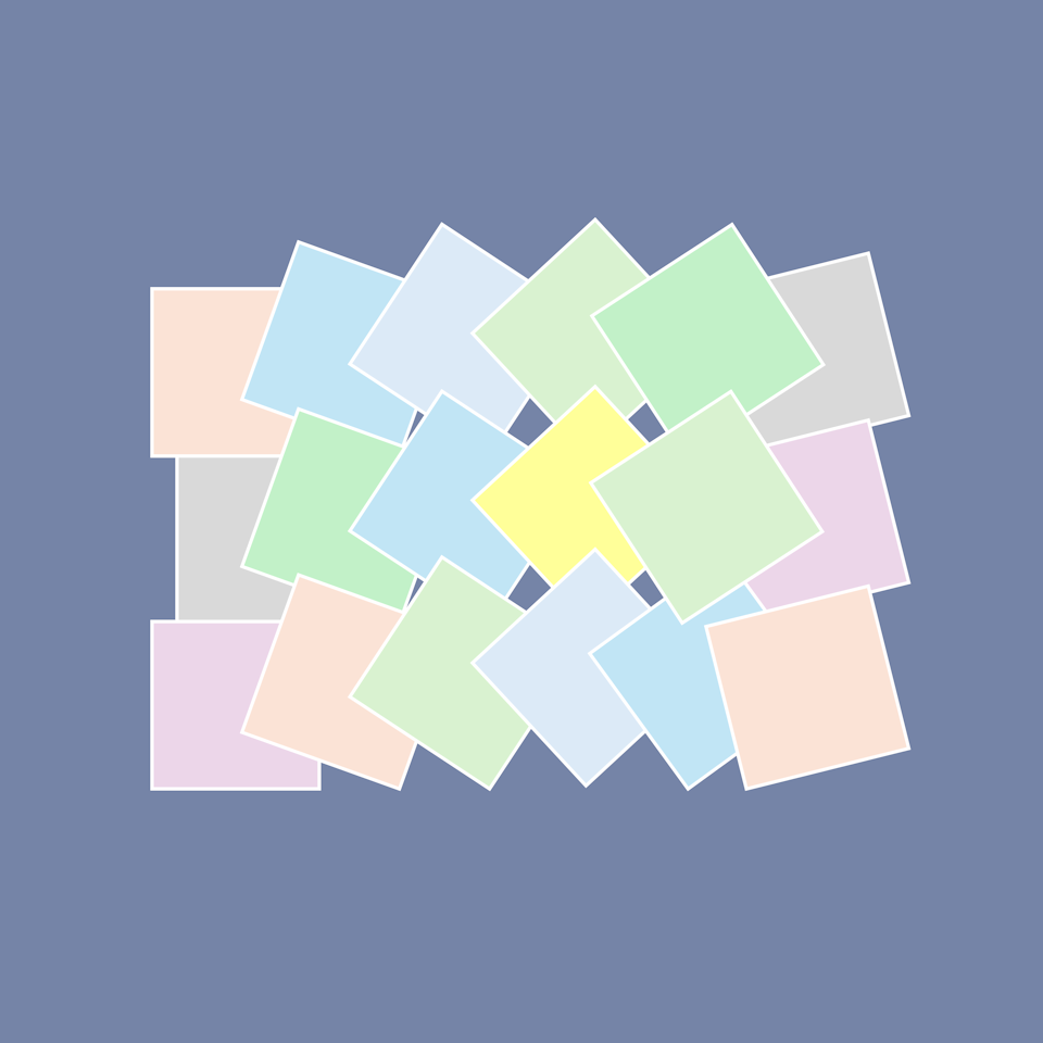 Die Bilder der squares-Reihe basieren auf einer Serie von Quadraten, die einen Bewegungsablauf in 5 Schritten dekonstruieren. Die Zwischenschritte sind dabei leicht ungleichmäßig verteilt, das gibt dem Bild etwas mehr Dynamik. Der Bewegungsablauf wird dabei jeweils dreimal dargestellt.