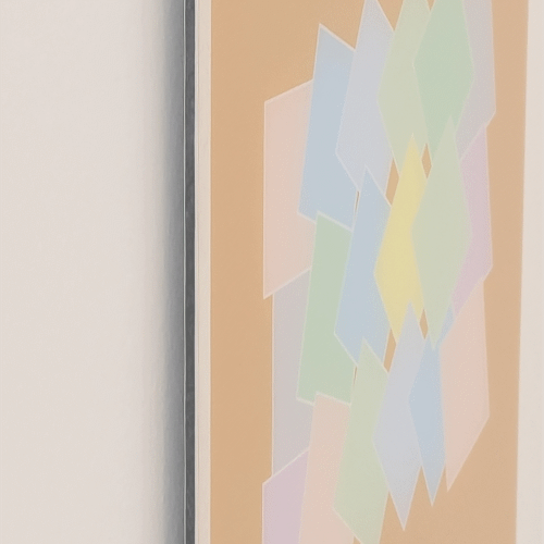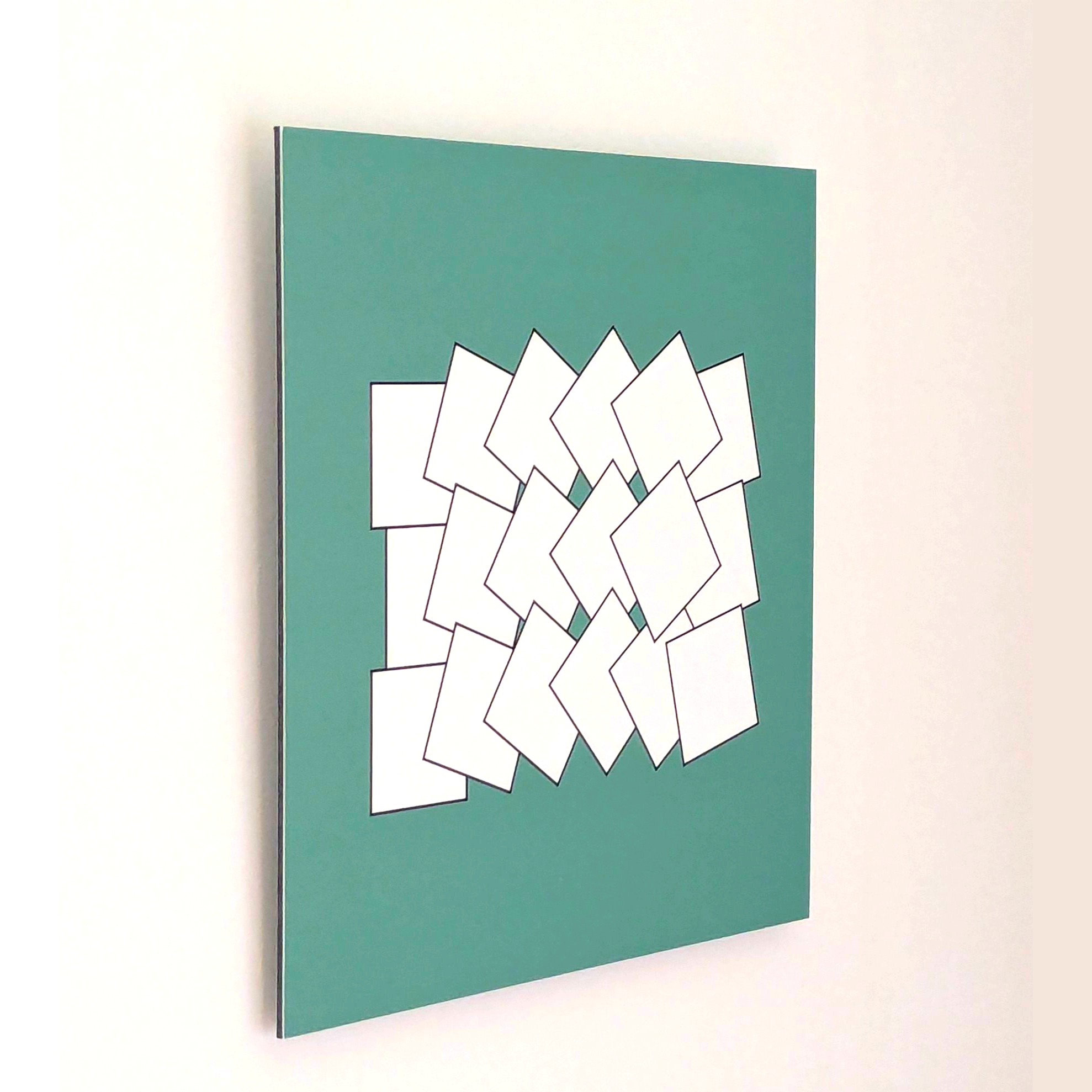 Alle Bilder werden auf hochwertiges FineArt-Papier gedruckt (mattes Hahnemühle PhotoRag Bright White, 310 g/qm, Baumwolle, hellweiß) und anschließend auf verschiedene Träger kaschiert. Der Druck in der hohen Auflösung von 360 dpi garantiert eine sehr scharfe Darstellung der geometrischen Elemente, insbesondere auch von schrägen Kanten und Linien. Die Behandlung mit einem Protective Spray schützt die Bilder vor Schmutz, Fingerabdrücken sowie Feuchtigkeit und erhöht die UV-Stabilität. Die Oberflächen der Bilder wirken sehr hochwertig.